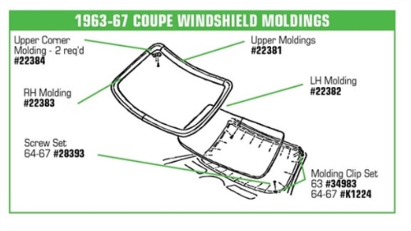 Windshield Molding. Coupe Outer Corner 2R 64-67